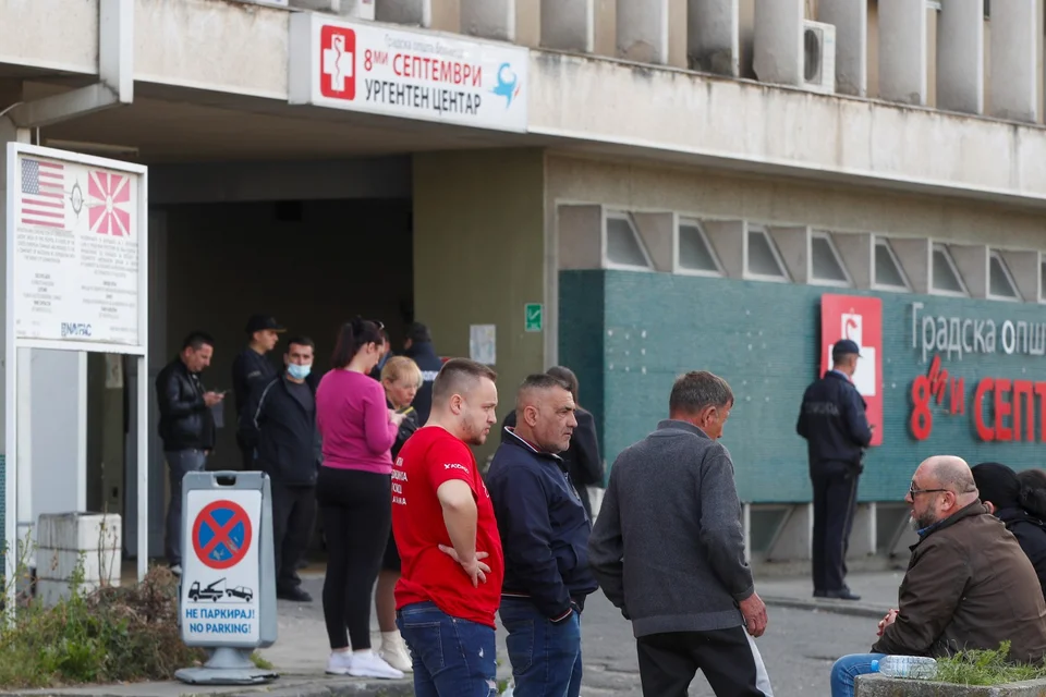 Πλήθος κόσμου έξω από νοσοκομείο της Βόρειας Μακεδονίας όπου μεταφέρθηκαν οι τραυματίες / Φωτογραφία: ΑΡ