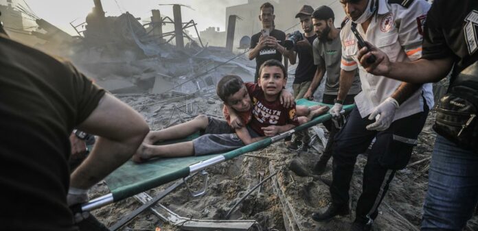 Ωστόσο, πολύ σύντομα, και οι επικεφαλής του ΟΗΕ και οι μη κυβερνητικές οργανώσεις, καταγγέλλοντας ταυτόχρονα την κράτηση ομήρων από τη Χαμάς, άρχισαν να κάνουν λόγο για «εγκλήματα πολέμου». «Ακόμα και οι πόλεμοι έχουν κανόνες», δηλώνει προπαντός ο Αντόνιο Γκουτέρες, ένας γενικός γραμματέας του ΟΗΕ που τον ξέραμε πιο «μαζεμένο», προτού προσθέσει ότι «ο εφιάλτης της Γάζας είναι κάτι παραπάνω από μια ανθρωπιστική κρίση. Είναι μια κρίση ανθρωπιάς. Η Γάζα σταδιακά μετατρέπεται σε νεκροταφείο παιδιών» (3). Η Διεθνής Αμνηστία παρουσιάζει «συντριπτικές αποδείξεις» παραβίασης του διεθνούς δικαίου. Ενόσω το Ισραήλ ανακοινώνει ότι δεν δύναται να εγγυηθεί την ασφάλεια των δημοσιογράφων, οι Δημοσιογράφοι Χωρίς Σύνορα το κατηγορούν ότι στοχεύει εσκεμμένα τους συναδέλφους τους (4). Οι οργανισμοί του ΟΗΕ και οι ανθρωπιστικές οργανώσεις κυκλοφορούν δελτία Τύπου στα μέσα κοινωνικής δικτύωσης: τα νοσοκομεία, τα σχολεία και τα ασθενοφόρα δεν αποτελούν πολεμικούς στόχους. «Αυτό είναι που πασχίζουμε να κάνουμε: ο αριθμός αμάχων θυμάτων να είναι ο ελάχιστος δυνατός. Δυστυχώς [οι προσπάθειές μας] δεν στέφονται με επιτυχία», παραδέχεται ο Βενιαμίν Νετανιάχου (CBS News, 16 Νοεμβρίου 2023). Σε ένδειξη διαμαρτυρίας, πολλές χώρες του Νότου (Νότια Αφρική, Κολομβία, Χιλή κ.ά.) ανακαλούν τους πρέσβεις τους στο Τελ Αβίβ. Η Ρωσία, η Κίνα, το Ιράν και η Σαουδική Αραβία θεωρούν τις ΗΠΑ υπεύθυνες για την κατάσταση στη Μέση Ανατολή.