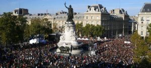 «Αντίσταση, αντίσταση», φώναξαν οι διαδηλωτές, ενώ ο Μελανσόν , απαντώντας στον Εμανουέλ Μακρόν που εξέφρασε την αποφασιστικοτητά του για την εφαρμογή της μεταρρύθμισης λέγοντας ότι «πιστεύει στη δημοκρατία, αλλά δημοκρατία δεν είναι ο δρόμος», δήλωσε: «Ο δρόμος έριξε τους βασιλιάδες, τους ναζί».