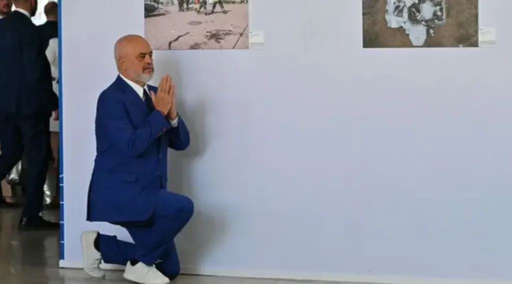 Στη Διάσκεψη για την Ανασυγκρότηση της Ουκρανίας, που πραγματοποιήθηκε στη Ρώμη, ο Ράμα χαιρέτησε την Μελόνι γονατίζοντας.