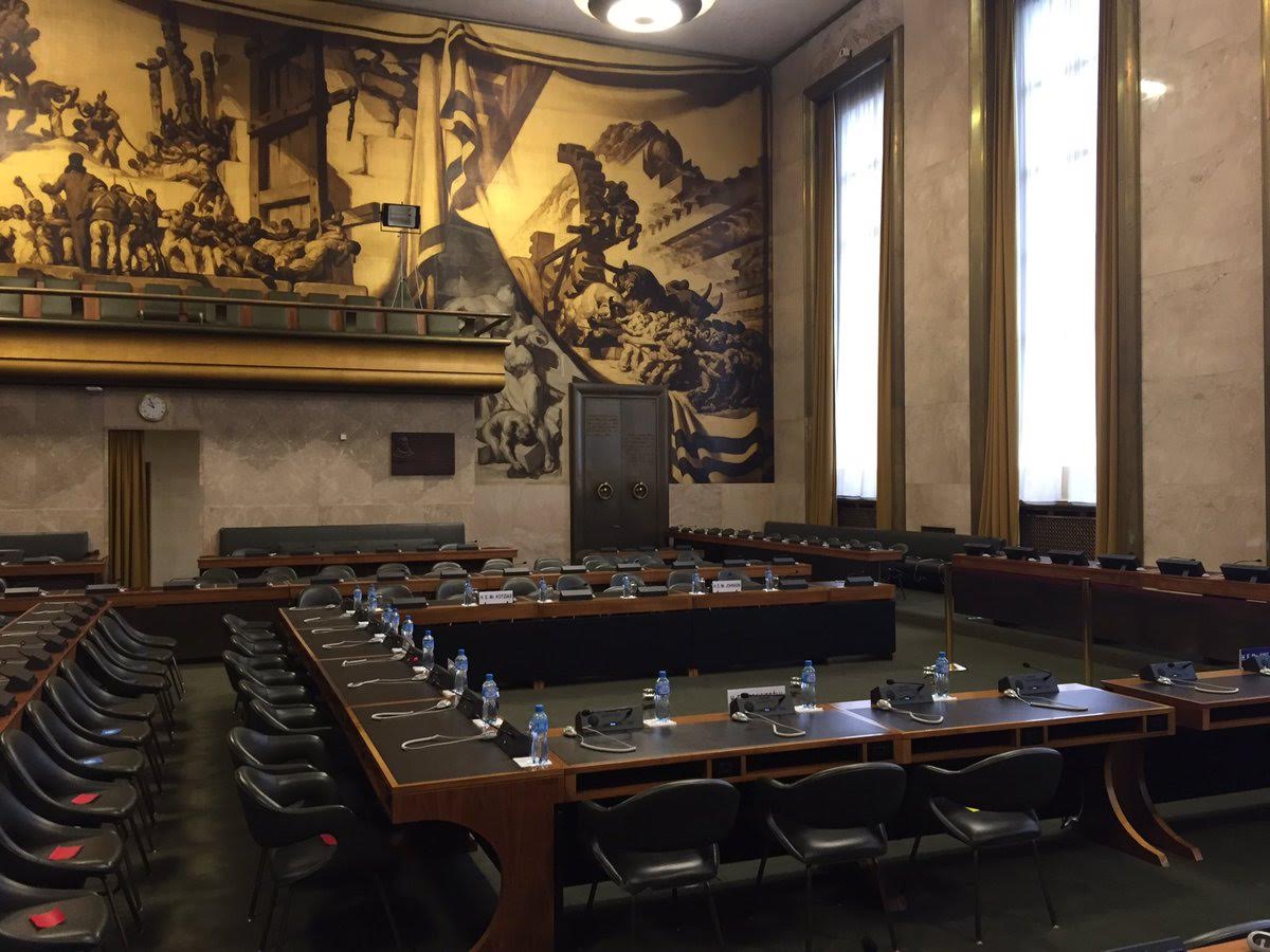 - Σε αυτή την αίθουσα, στο Παλάτι των Εθνών, γίνεται η Διάσκεψη για το Κυπριακό:
