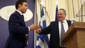 Ο υπουργός Εξωτερικών Νίκος Κοτζιάς (Δ) με τον ομόλογό του από την ΠΓΔΜ Nikola Dimitrov (Α) κάνουν δηλώσεις μετά τη συνάντησή τους στο Υπουργείο Εξωτερικών, Αθήνα, την Τετάρτη 14 Ιουνίου 2017. ΑΠΕ-ΜΠΕ/ΣΥΜΕΛΑ ΠΑΝΤΖΑΡΤΖΗ SEPTEMBER 1, 2017