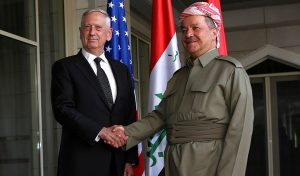 Σημειώνεται –ή μάλλον υπογραμμίζεται– ότι ο πρόεδρος της Αυτόνομης Διοίκησης του Κουρδιστάν, Μεσούτ Μπαρζανί, δήλωσε ότι ο υπουργός Αμύνης των ΗΠΑ, Τζέιμς Μάτις, στην πρόσφατη συνάντησή τους την Ερμπίλ, δεν εξέφρασε αντιρρήσεις για τη διεξαγωγή του δημοψηφίσματος.
