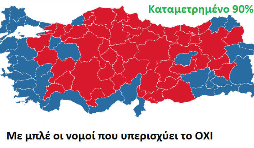 • Έχασε την Κωνσταντινούπολη όπου το μέτωπο του «Ναι» είχε πάρει 57,7% και τώρα έπεσε κάτω από 50%, με το «Όχι» να υπερισχύει.