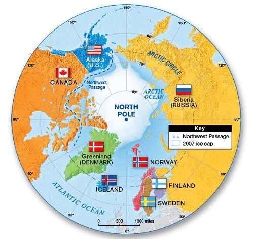 Επίσης κατά τον Ψυχρό Πόλεμο με τους διηπειρωτικούς πυραύλους να εκτοξεύονται περνώντας πάνω από το Β Πόλο για να πλήξουν τις ΗΠΑ έκανε την περιοχή σημαντικότερη από ό,τι θα φανταζόταν κάποιος. Το λιώσιμο των πάγων μετατρέπει τον Αρκτικό Ωκεανό σε μια άλλη Μεσόγειο με Βερίγγειο Πορθμό αντι Γιβραλτάρ και με Στενά της Δανίας και Γροιλανδία αντί για Αραβική και Σιναΐτικη χερσόνησο. Όπως παλαιότερα η πλεύση μέσω Μεσογείου κρίθηκε πιο συμφέρουσα του περίπλου της Αφρικής έτσι και η διαδρομή μέσω αρκτικού κύκλου θα κριθεί πιο συμφέρουσα της Μεσογείου.