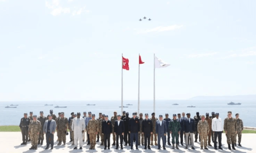 Ο Τούρκος πρόεδρος Ρετζέπ Ταγίπ Ερντογάν με τον υπουργό Άμυνας Χουλουσί Ακάρ και τους επικεφαλής των Ενόπλων Δυνάμεων της Τουρκίας στο περιθώριο της άσκησης EFES 2022 (φωτ.: T.C. Millî Savunma Bakanlığı @tcsavunma)