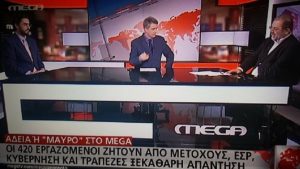 Ο Αντώνης Φουρλής, ο Μιχάλης Ιγνατίου και ο Αντώνης Καλκαβούρας στην έκτακτη εκπομπή του Mega. Photo via aixmi.gr JANUARY 15, 2018