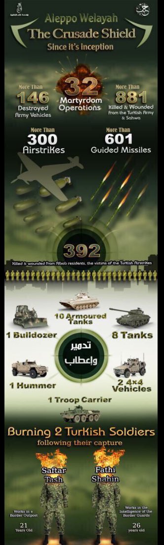 Παρακάτω παραθέτουμε ένα Γράφημμα Πληροφοριών (infographics), που δημοσιοποίησε ο ISIS για τις απώλεις της Τουρκίας στην εν λόγω επιχείρηση.