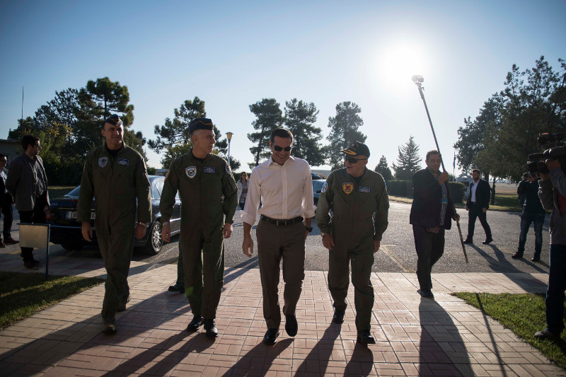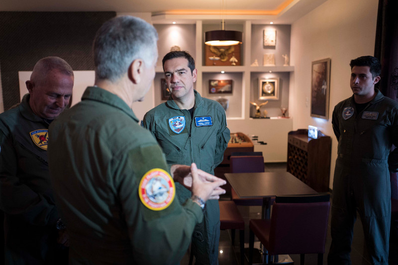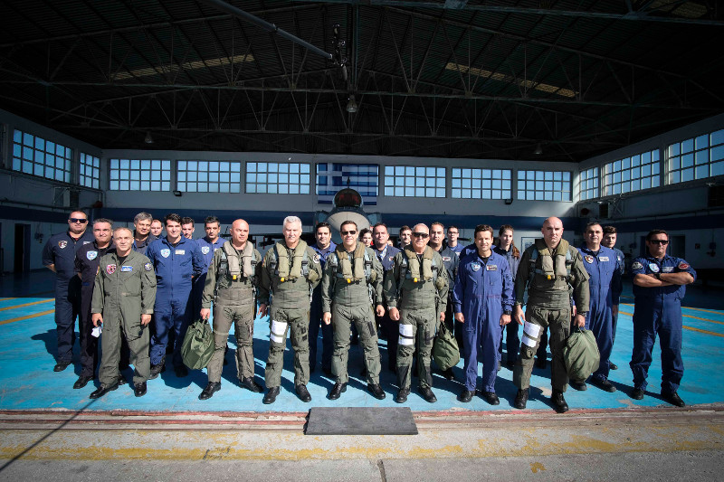 Ο πρωθυπουργός έφθασε το πρωί μαζί με την ηγεσία της Αεροπορίας και των Ενόπλων Δυνάμεων στην 110 Πτέρυγα Μάχης της Λάρισας, απ’ όπου πραγματοποίησε πτήση με μαχητικό αεροσκάφος F-16 της Πολεμικής Αεροπορίας.