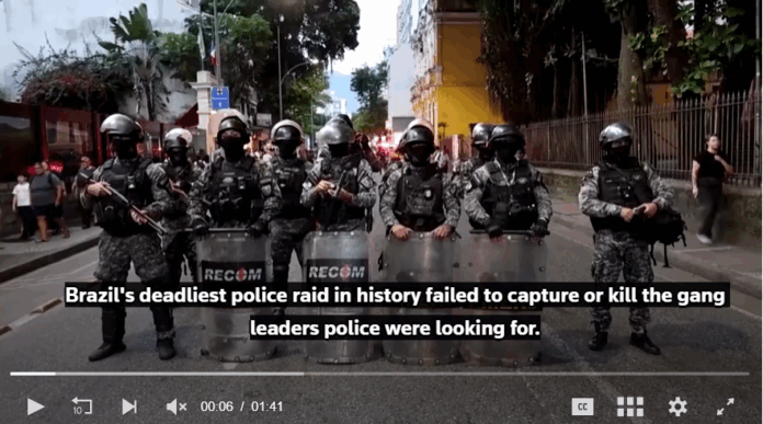 ΡΙΟ ΝΤΕ ΤΖΑΝΕΪΡΟ, 10 Νοεμβρίου (Reuters) – Ο κυβερνήτης του Ρίο ντε Τζανέιρο παρουσίασε ως επιτυχία τη φονικότερη αστυνομική επιχείρηση στην ιστορία της Βραζιλίας, ωστόσο κανένας από τους 117 ανθρώπους που σκοτώθηκαν από την αστυνομία δεν συγκαταλέγεται στους 69 κατηγορουμένους που αναφέρονται στην κατηγορική πράξη που αποτέλεσε τη βάση για την επιχείρηση.