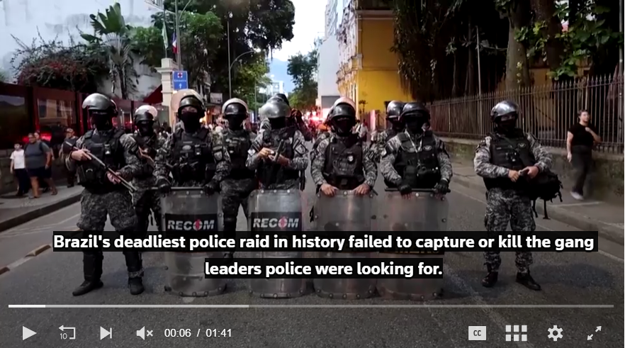 Τα ευρήματα θέτουν υπό αμφισβήτηση την επίσημη αφήγηση της επιχείρησης, που πραγματοποιήθηκε σε δύο πυκνοκατοικημένες εργατικές γειτονιές‑φαβέλες στη βόρεια ζώνη της πρωτεύουσας της πολιτείας. Μετά την επιχείρηση, οι κάτοικοι διαμόρφωσαν σειρά με δεκάδες πτώματα στους δρόμους.