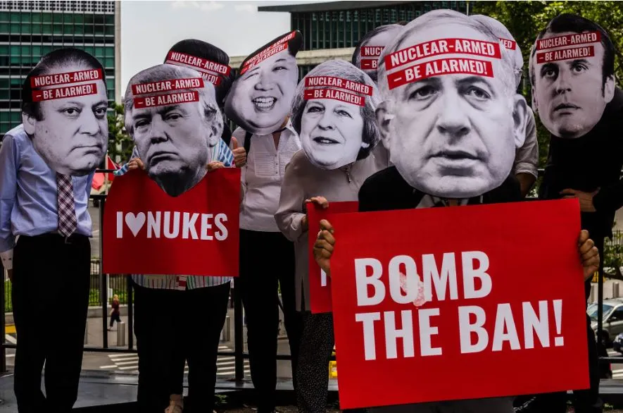 Οι ακτιβιστές του ICAN επικρίνουν την απόφαση των κρατών με πυρηνικά όπλα, συμπεριλαμβανομένου του Ισραήλ, να μποϊκοτάρουν τις διαπραγματεύσεις για το TPNW το 2017. Φωτογραφία: ICAN