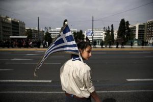 Ένα κορίτσι με ελληνική σημαία στην Αθήνα, τον Μάρτιο του 2015. ALKIS KONSTANTINIDIS / REUTERS