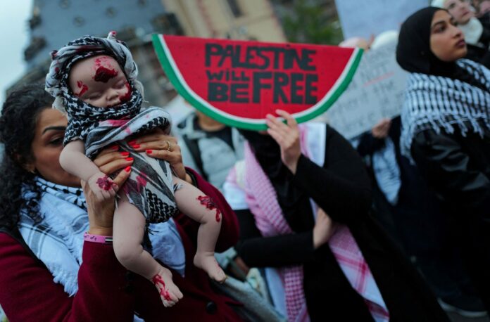 Διαδηλώσεις υπέρ του παλαιστινιακού λαού έλαβαν χώρα σε όλον τον κόσμο, ανήμερα της επετείου των δύο ετών από την επίθεση της Χαμάς στο Ισραήλ και τον γενοκτονικό πόλεμο στη Γάζα. Στην Αθήνα, σημειώθηκαν επεισόδια, με ρίψη χημικών και κρότου λάμψης από τις δυνάμεις ασφαλείας, έξω από την πρεσβεία του Ισραήλ. Στη φωτογραφία, στιγμιότυπο από την κινητοποίηση στη Φρανκφούρτη της Γερμανίας (REUTERS/Kai Pfaffenbach)
