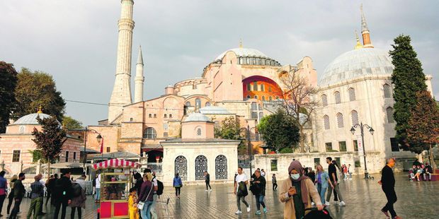 Φωτογραφία: Η πλατεία μπροστά από το τζαμί (έτσι την αποκαλεί ο δημοσιογράφος) της Αγίας Σοφίας στην Κωνσταντινούπολη, 11 Οκτωβρίου 2021. (ZUMA Press Wire)