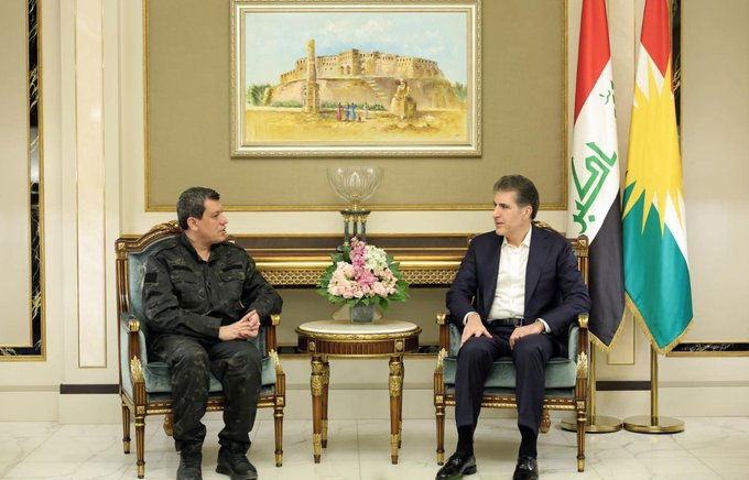 -#Kurdistan-Iraq: Πραγματοποιείται συνάντηση μεταξύ του στρατηγού Μαζλούμ Αμπντί και του προέδρου Νετσιρβάν Μπαρζανί στο Ερμπίλ, όπου ο στρατηγός Μαζλούμ Αμπντί εμφανίζεται με στρατιωτική στολή.