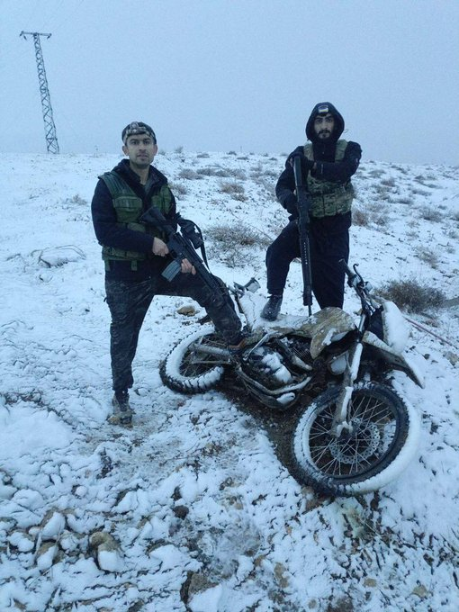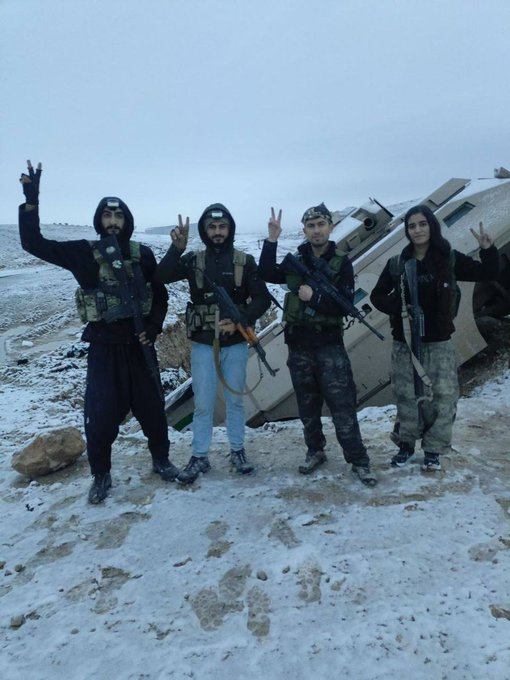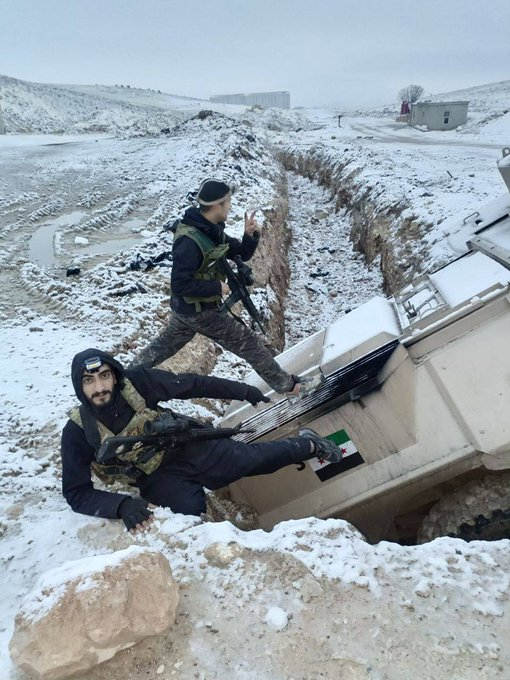 Σήμερα το πρωί, το #ISIS, το HTS και το τουρκικό κράτος εξαπέλυσαν επίθεση στην πόλη Σιρίν με βαριά όπλα, οβιδοβόλα και άρματα μάχης. Σε απάντηση, οι μαχητές των SDF, #YPG και #YPJ ανταπέδωσαν σθεναρά και απέκρουσαν τις επιθέσεις. Ένα όχημα φορτωμένο με ένα βαρύ πολυβόλο DShK, δύο μοτοσικλέτες και ένα τεθωρακισμένο όχημα που ανήκε στις συμμορίες καταστράφηκαν. Πολλά μέλη συμμοριών σκοτώθηκαν και τραυματίστηκαν επίσης, και οι μαχητές ανέκτησαν τα πτώματα των μελών της συμμορίας. Κατασχέθηκε επίσης μεγάλος αριθμός όπλων που ανήκαν στις συμμορίες.Οχήματα HTS/SNA/ISIS, που παρέχονται από την Τουρκία, φαίνονται ακινητοποιημένα, με μαχητές των YPG/YPJ να στέκονται από πάνω τους στον άξονα Sarrin στην ύπαιθρο του Kobani.Στην περιοχη εχει χιονισει.