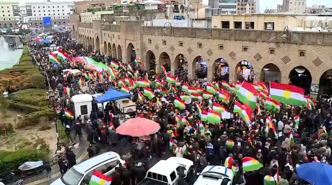 -#Kurdistan-Iraq: Μεγάλες διαδηλώσεις στο Ερμπίλ σε ένδειξη αλληλεγγύης με τους Κούρδους στη Συρία (Ροζάβα) στην ακρόπολη του Ερμπίλ