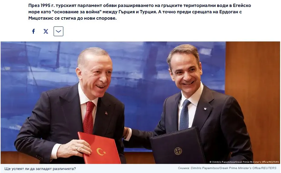 Το 1995, το τουρκικό κοινοβούλιο κήρυξε την επέκταση των ελληνικών χωρικών υδάτων στο Αιγαίο Πέλαγος «αιτία πολέμου» μεταξύ Ελλάδας και Τουρκίας. Και λίγο πριν από τη συνάντηση Ερντογάν με τον Μητσοτάκη, προέκυψαν νέες διαμάχες, γράφει ο Γιάννης Παπαδημητρίου στην Deutsche Welle.