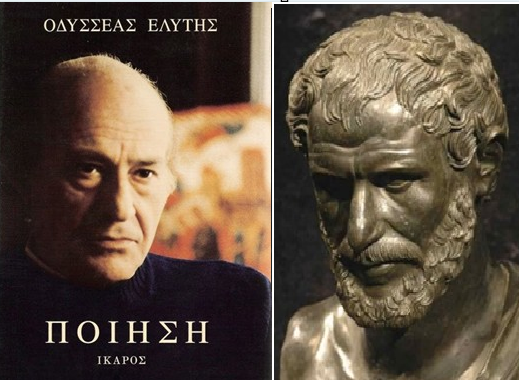 Θα προσπαθήσω να χαρτογραφήσω στη συνέχεια τις σχέσεις μεταξύ των δύο μεγάλων Ελλήνων στοχαστών, του Ελύτη και του Ηράκλειτου, με κοινό άξονα τον ελληνότροπο λόγο, δηλαδή τον ιδιαίτερο τρόπο με τον οποίο οι Έλληνες, πρώτοι και μόνοι στην Ιστορία, επέλεξαν −και επιμένουν− να κατανοούν τα φαινόμενα, φυσικά και ηθικά, να τα ονομάζουν και να τα αναλύουν, να τα ιεραρχούν, να τα συσχετίζουν και να τα κοινωνούν διαχρονικά, με μια απαράμιλλη διαύγεια νου και πνεύματος, στους άλλους ανθρώπους, Έλληνες και μη.