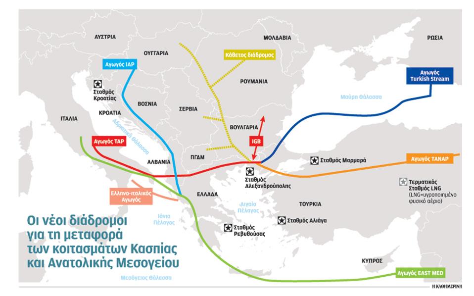 Η αγορά της Ασίας για την κάλυψη των αυξανόμενων αναγκών σε Κίνα και Ινδία, ο ενεργειακός τομέας των οποίων έχει μπει σε πορεία σταδιακής αποανθρακοποίησης, είναι η βασική επιλογή των πετρελαϊκών, με πρώτο σταθμό την ελλειμματική –και εξαρτώμενη σε ποσοστό 50% από τη Ρωσία– αγορά της Τουρκίας. Η σημερινή παραγωγή φυσικού αερίου στην περιοχή της ΝΑ Ευρώπης και τα βεβαιωμένα μέχρι σήμερα αποθέματα δεν επιτρέπουν ασφαλή επιλογή διαδρομής για την έξοδο του φυσικού αερίου. Το τοπίο αναμένεται να ξεκαθαρίσει περισσότερο μέσα στο 2017, καθώς έχουν προγραμματιστεί νέες γεωτρήσεις σε Κύπρο και Αίγυπτο.