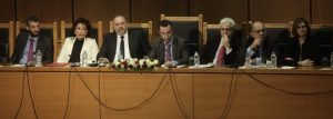 Οι Δικαστές και Εισαγγελείς – μέλη της Ένωσης Δικαστών και Εισαγγελέων κατά την Τακτική Γενική Συνέλευση που πραγματοποιήθηκε στις 16 Δεκεμβρίου 2017, στην αίθουσα εκδηλώσεων του Εφετείου Αθηνών: