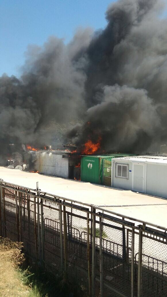 Την ίδια στιγμή ομάδες μεταναστών δεν επιτρέπουν στην Πυροσβεστική να μπει μέσα στο ΚΥΤ και να σβήσει τη φωτιά.