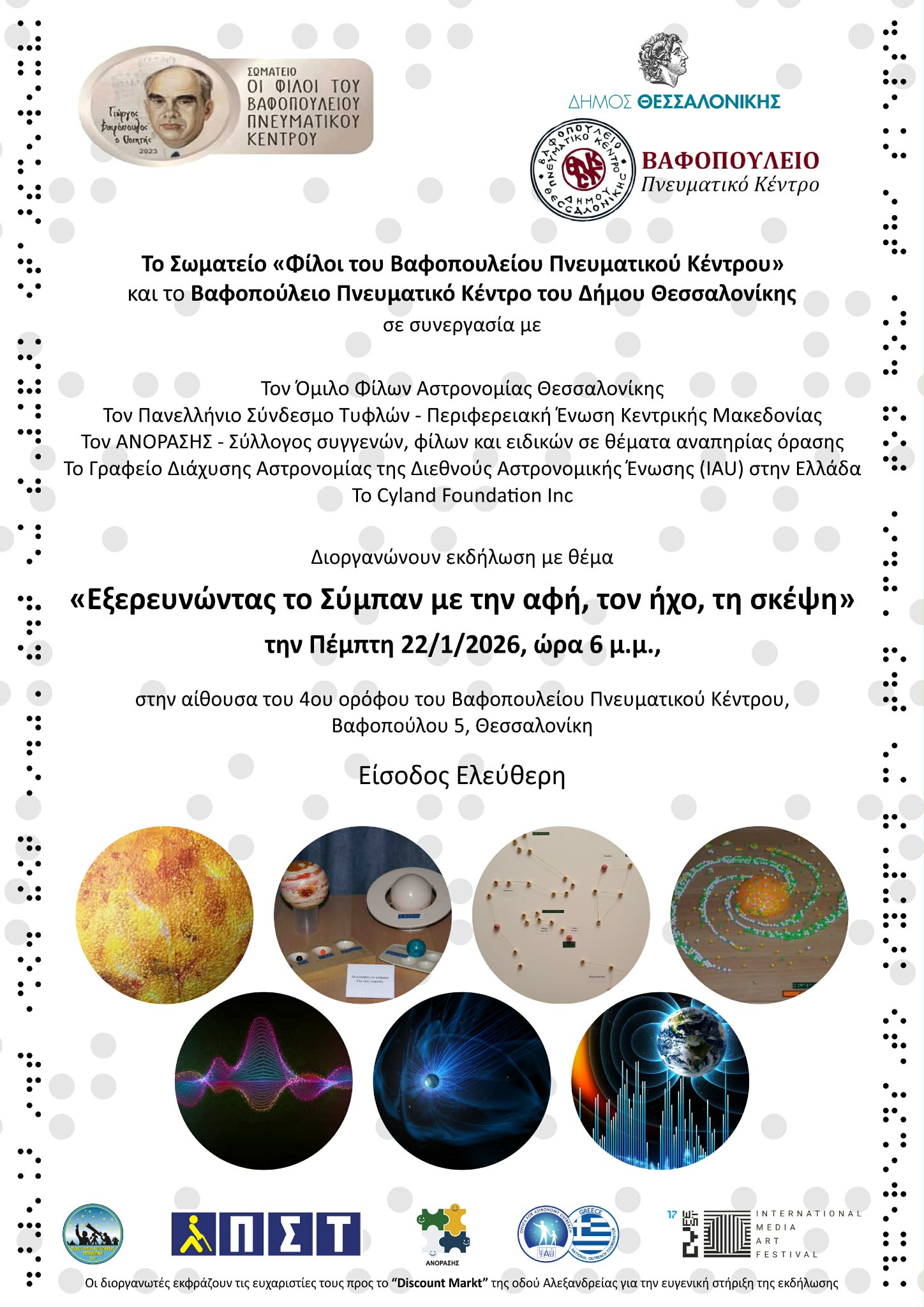 Μια εκδήλωση που απευθύνεται σε άτομα με ή χωρίς αναπηρία όρασης και συνδιοργανώνουν οι ακόλουθοι φορείς: