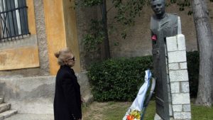 Κατάθεση στεφάνου στον ανδριάντα του Σπύρου Μουστακλή. Φωτογραφία Αρχείου. ΑΠΕ-ΜΠΕ/ΑΛΕΞΑΝΔΡΟΣ ΜΠΕΛΤΕΣ