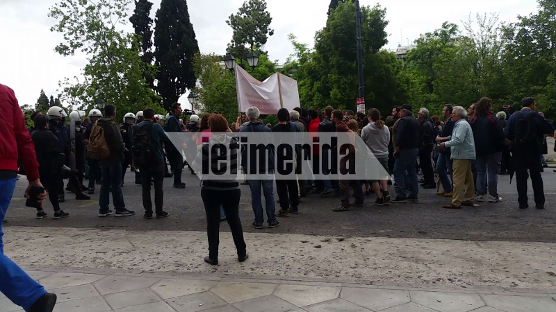 Νωρίτερα ένταση προκάλεσε μία ομάδα αντιεξουσιαστών στην Ομόνοια κατά τη διάρκεια της πορείας διαμαρτυρίας.