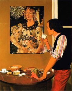 Ο ζωγραφικός πίνακας που πλαισιώνει τη σελίδα (“Καφές”, 1982) είναι έργο της Τέτας Μακρή.