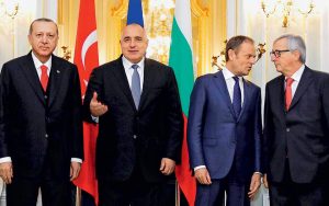 Ταγίπ Ερντογάν, Μπόικο Μπορίσοφ, Ντόναλντ Τουσκ και Ζαν-Κλοντ Γιούνκερ, σε αναμνηστική φωτογραφία, στη χθεσινή Σύνοδο Κορυφής της Βάρνας.