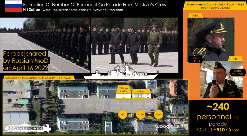 B) ~240 crew in video, so around 50% dead or injured pic.twitter.com/CsnvRxy9Sm— H I Sutton (@CovertShores) April 16, 2022