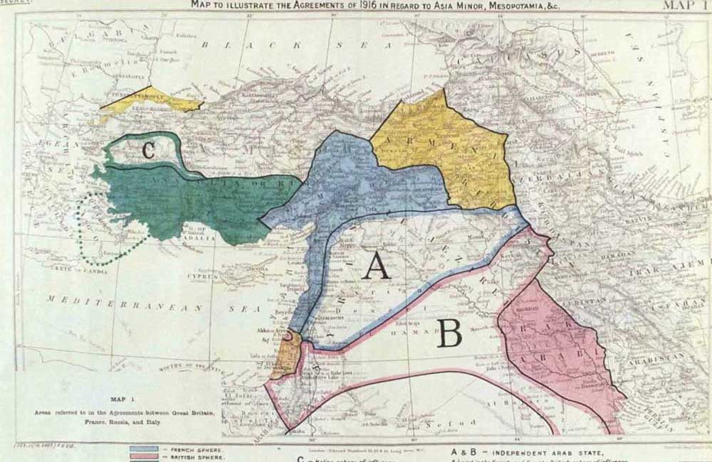 Ένα απλό βλέμμα σε έναν χάρτη της Μέσης Ανατολής αρκεί για να δείξει πόσο κυνικά η Βρετανία και η Γαλλία τεμάχισαν την περιοχή μετά τη συμφωνία Σάικς-Πικό, για να εξυπηρετήσουν τις γεωπολιτικές τους ορέξεις. Τα μεσοπρόθεσμα και μακροπρόθεσμα αποτελέσματα ήταν η διαρκής ένταση στην περιοχή από τότε.