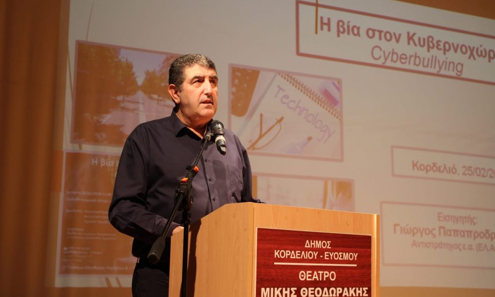 Ο Πρόεδρος του Ομίλου Αστυνομικών Θεσσαλονίκης, Δημήτρης Αποστόλου, αναφέρθηκε στο δραματικό φαινόμενο του cyberbullying, το οποίο χαρακτήρισε ως έναν «αόρατο πόλεμο» που εξελίσσεται καθημερινά πίσω από τις οθόνες των παιδιών. Τόνισε ότι πρόκειται για μια μορφή βίας με σοβαρές ψυχολογικές συνέπειες, που μπορεί να τραυματίσει βαθιά την αυτοεκτίμηση και την ψυχική ισορροπία ενός παιδιού.