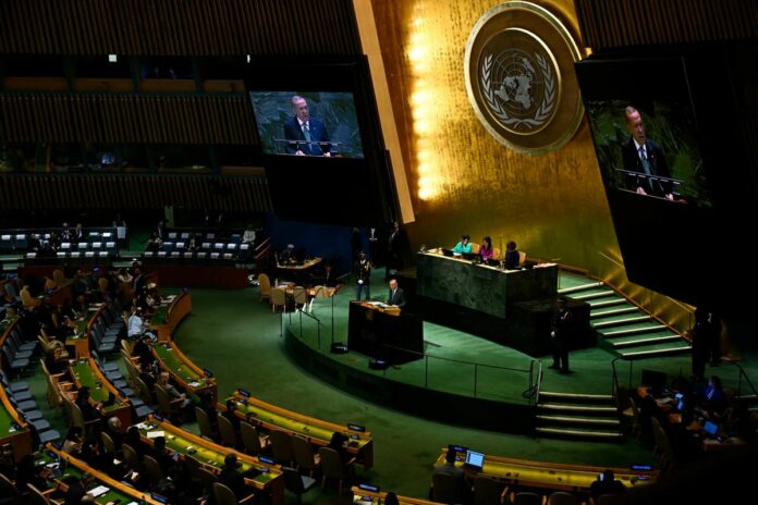 Η θέση της κατοχικής Τουρκίας δεν αλλάζει στο Κυπριακό. Απορρίπτει το πλαίσιο των Ηνωμένων Εθνών και προτάσσει τη λύση δυο κρατών. Η έκκληση Ερντογάν, ενώπιον της Γενικής Συνέλευσης, για αναγνώριση του κατοχικού καθεστώτος, γίνεται για τρίτη συνεχή χρονιά. Το επανέλαβε και φέτος με την… φόρα της αναβαθμισμένης Τουρκίας.