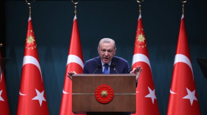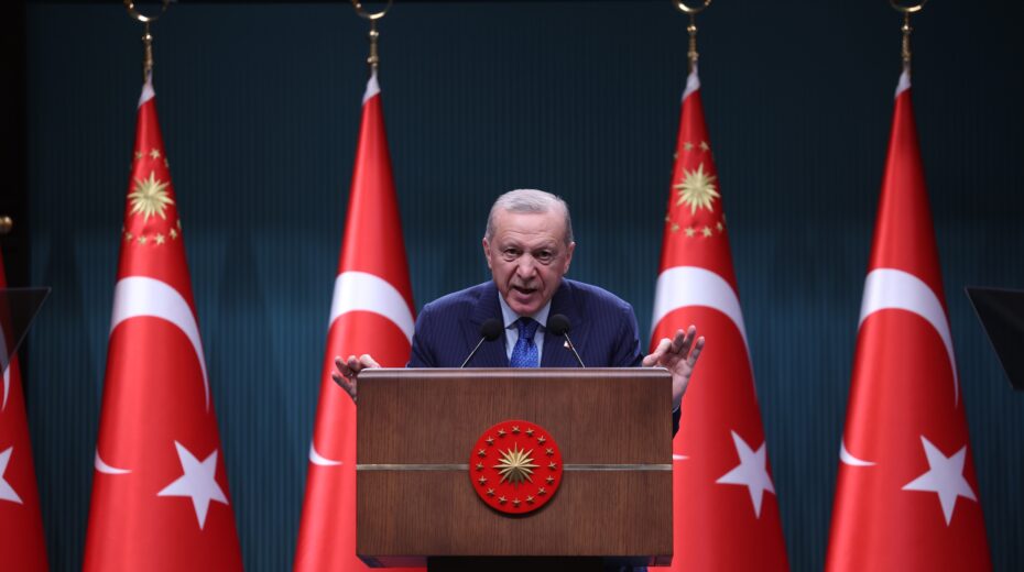 Ο Τούρκος πρόεδρος Ρετζέπ Ταγίπ Ερντογάν μιλά μετά από συνεδρίαση του υπουργικού συμβουλίου στο προεδρικό μέγαρο στην Άγκυρα. Φωτογραφία αρχείου: EPA / NECATI SAVAS.