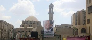Μια αφίσα του Σίσι στο κέντρο του Καΐρου, με το τζαμί al-Azhar στο δεύτερο πλάνο, τον Μάιο του 2014. AMR DALSH / REUTERS