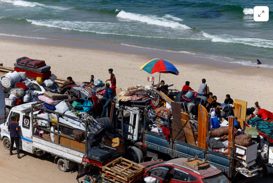 Ο Μοχάμεντ Αλ-Μπαγιάρι, 36χρονος πατέρας έξι παιδιών, δεν είχε χρόνο να σκεφτεί τη διεθνή διπλωματία, καθώς αυτός και τα παιδιά του έσπρωχναν ένα καρότσι με τα λιγοστά τους υπάρχοντα σε μια ανηφόρα στη Γάζα, κατά τη διάρκεια μιας αναζήτησης 14 ωρών για ένα ασφαλές καταφύγιο για την οικογένεια.
