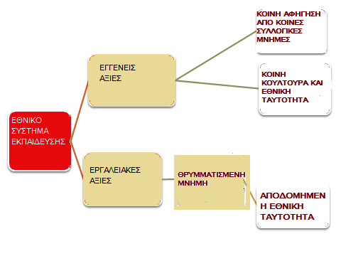 Τα προγράμματα σπουδών σε όλες τις βαθμίδες της εκπαίδευσης έχουν υποστεί διάφορες βλάβες και εκπτώσεις βάσει της πλημμελούς διάκρισης μεταξύ εγγενούς και χρηστικού στα «βασικά» μαθήματα. Στο Δημοτικό, ας πούμε, ούτε η Γεωγραφία ούτε η Ιστορία αποτελούν βασικά μαθήματα, και εκδηλώνονται δημόσιοι διαξιφισμοί για τα Θρησκευτικά ως μείζον ζήτημα της χριστιανορθόδοξης ελληνικότητας, ώστε να επισπευστούν άλλες απλουστεύσεις στα μαθήματα της γλώσσας και να αποδυναμωθούν τα μαθήματα που άπτονται των επιστημών του χώρου (π.χ. Γεωγραφία, Ανθρωπογεωγραφία) και του χρόνου (π.χ. Ιστορία), οι οποίες συμβάλλουν καταλυτικά στην αναγνώριση των ταυτοτικών πολιτισμικών χαρακτηριστικών μας. Στο Γυμνάσιο απαλείφονται τα Αρχαία ως πενιχρής (ήτοι απλώς εγγενούς) αξίας στο ωρολόγιο πρόγραμμα- δεν είναι βασικό (χρηστικό) μάθημα, δηλαδή. Το Λύκειο αποτελεί έναν κολασμένο προνάρθηκα εισαγωγής στην τριτοβάθμια, που ως τελικός παραλήπτης δέχεται εισακτέους εκπαιδευμένους στη νοοτροπία του χρηστικού και εξοικειωμένους μονοδιάστατα με το εργαλειακό ως απολύτως βασικές –άρα… αποκλειστικές- παραμέτρους στην εκπαίδευση.