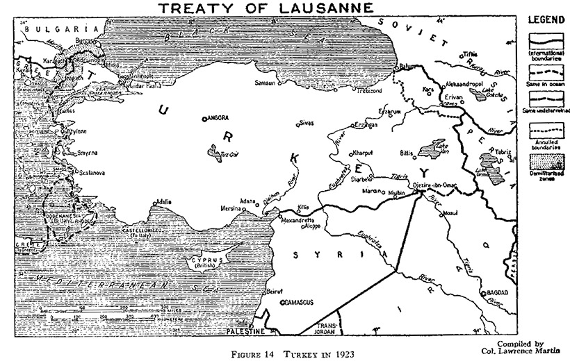 Ο χάρτης της περιοχής όπως διαμορφωνόταν με τη Συνθήκη της Λοζάνης