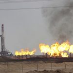 Flames emerge from a pipeline at Rumaila oilfield in Basra