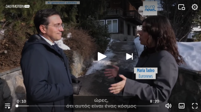 Ο επικεφαλής της ισπανικής διπλωματίας, José Manuel Albares, δήλωσε σε συνέντευξή του στο Euronews στο περιθώριο του Παγκόσμιου Οικονομικού Φόρουμ στο Νταβός ότι η ΕΕ πρέπει να σταθεί σταθερά πίσω από τις αξίες της, καθώς ορισμένες χώρες απειλούν με χρήση βίας ως εξωτερική πολιτική.