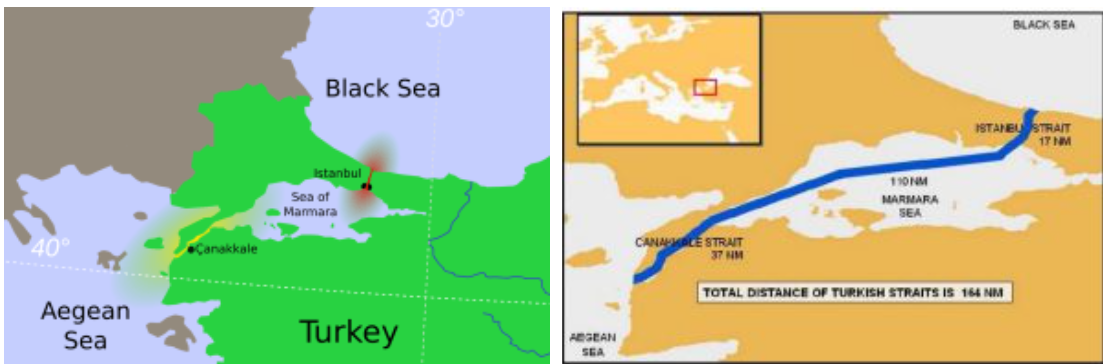 Ο έλεγχος των στενών αποτελεί κεντρικό μέλημα στο διεθνές δίκαιο και στις μελέτες ασφάλειας. Τα σημεία ελέγχου είναι ταυτόχρονα νομικά καθεστώτα, γεωγραφικά περιουσιακά στοιχεία και στρατηγικοί μοχλοί (Klein, 2011). Η Σύμβαση του Μοντρέ, σε αντίθεση με τη Σύμβαση των Ηνωμένων Εθνών για το Δίκαιο της Θάλασσας (UNCLOS), παρέχει στην Τουρκία συγκεκριμένα δικαιώματα και ευθύνες, ιδίως όσον αφορά τα πολεμικά πλοία κρατών που δεν βρίσκονται στη Μαύρη Θάλασσα (Yildiz, 2021). Οι μελετητές σημειώνουν ότι η Σύμβαση του Μοντρέ εξισορροπεί την ελευθερία της ναυσιπλοΐας με την περιφερειακή σταθερότητα, ευνοώντας τα παράκτια κράτη, ενώ παράλληλα επιβάλλει νομικά δεσμευτικούς περιορισμούς σε τρίτους (Erdem, 2017).