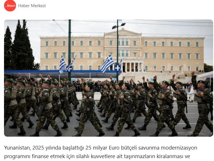Η Ελλάδα μετατρέπει στρατιωτικά κτίρια σε ξενοδοχεία και θερμικές εγκαταστάσεις σε εμπορικά ακίνητα για να χρηματοδοτήσει τα εξοπλιστικά της σχέδια στο Αιγαίο. Δυσκολεύοντας να καλύψει τον προϋπολογισμό εκσυγχρονισμού των 25 δισεκατομμυρίων ευρώ, η Αθήνα έχει στραφεί στις πωλήσεις ακινήτων παρά την υποστήριξη της ΕΕ, γράφει η τουρκική Sözcü.