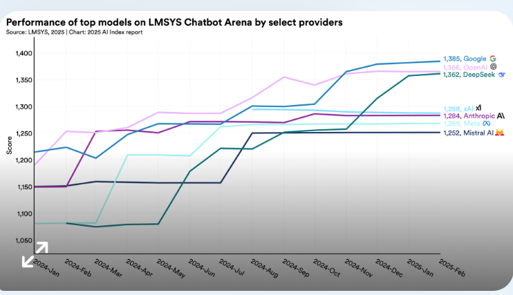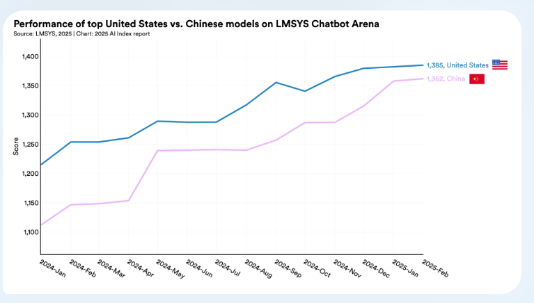 - Οι ΗΠΑ εξακολουθούν να ηγούνται στην παραγωγή κορυφαίων μοντέλων ΤΝ — αλλά η Κίνα μειώνει τη διαφορά στην απόδοση.
