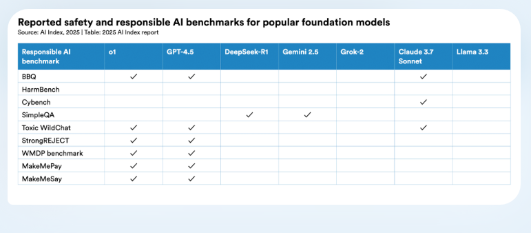 Τα περιστατικά που σχετίζονται με την ΤΝ αυξάνονται ραγδαία, όμως οι τυποποιημένες αξιολογήσεις υπεύθυνης ΤΝ (RAI) παραμένουν σπάνιες μεταξύ των μεγάλων βιομηχανικών δημιουργών μοντέλων. Ωστόσο, νέα πρότυπα όπως τα HELM Safety, AIR-Bench και FACTS προσφέρουν ελπιδοφόρα εργαλεία για την αξιολόγηση της εγκυρότητας και της ασφάλειας. Στον επιχειρηματικό τομέα, εξακολουθεί να υφίσταται χάσμα μεταξύ της αναγνώρισης των κινδύνων της RAI και της ουσιαστικής ανάληψης δράσης. Αντιθέτως, οι κυβερνήσεις δείχνουν αυξημένη ετοιμότητα: το 2024, η παγκόσμια συνεργασία για τη διακυβέρνηση της ΤΝ εντάθηκε, με οργανισμούς όπως ο ΟΟΣΑ, η ΕΕ, τα Ηνωμένα Έθνη και η Αφρικανική Ένωση να δημοσιεύουν πλαίσια που εστιάζουν στη διαφάνεια, την αξιοπιστία και άλλες βασικές αρχές της υπεύθυνης ΤΝ.