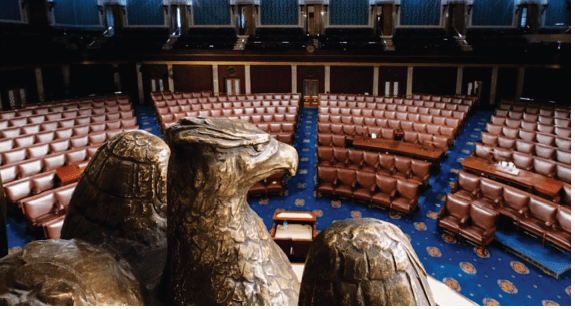 Σε θεσμικό επίπεδο αποτυπώθηκε με την υπερψήφιση στη Βουλή των Αντιπροσώπων του νόμου για την Αναστολή των Κανονικών Εμπορικών Σχέσεων με τη Ρωσία και τη Λευκορωσία – 420 υπέρ έναντι 3 κατά – (The Suspending Normal Trade Relations with Russia and Belarus Act, 17 Μαρτίου 2022)[10] και του Συμφώνου Δανεισμού-Μίσθωσης για την Υπεράσπιση της Δημοκρατίας στην Ουκρανία – 417 υπέρ έναντι 10 κατά – (Ukraine Democracy Defense Lend Lease Act of 2022, 28 Απριλίου 2022)[11]. Αμφότερες οι νομοθετικές πράξεις συμφωνήθηκαν ομόφωνα από τη Γερουσία. Η ουσιαστικά απόλυτη διακομματική συναίνεση που υπήρξε τους τρεις πρώτους μήνες του πολέμου στα δύο νομοθετικά σώματα, εμφάνισε τα πρώτα σημάδια διαφοροποίησης όταν τέθηκε προς ψηφοφορία ο νόμος για τις Επιπλέον Συμπληρωματικές Πιστώσεις στην Ουκρανία (Additional Ukraine Supplemental Appropriations Act 2022, 10 Μαΐου 2022) που προέβλεπε αποστολή βοήθειας ύψους 40 δις δολαρίων[12]. 11 από τους 50 γερουσιαστές και 57 από τους 425 βουλευτές τον καταψήφισαν. Όλοι τους προέρχονταν από τη συντηρητική πτέρυγα του Ρεπουμπλικανικού Κόμματος που ασπάζεται τον μη παρεμβατισμό ή νέο-απομονωτισμό. Ανήκουν στο τρίτο ρεύμα σκέψης για την εξωτερική πολιτική στους κόλπους των Ρεπουμπλικάνων[13].