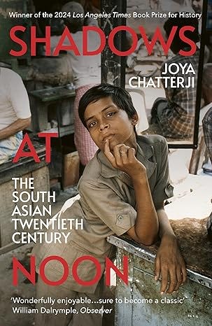 Και κατά το σκέλος της Ινδίας στην Παγκόσμια Ιστορική Περιοδεία του 2025 ανακάλυψα αυτό ακριβώς το βιβλίο, το οποίο μάλιστα είχε κερδίσει και το Βραβείο Ιστορίας Wolfson για το 2024. Το βιβλίο ήταν το Shadows at Noon: South Asia’s Twentieth Century της Joya Chatterji.