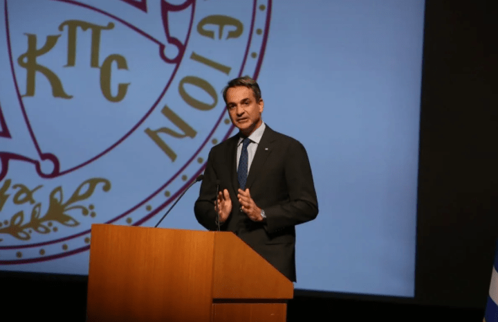 Ο πρωθυπουργός Κυριάκος Μητσοτάκης απευθύνει χαιρετισμό στην εκδήλωση της Αδελφότητος Οφφικιαλίων της Αγίας του Χριστού Μεγάλης Εκκλησίας «Παναγία η Παμμακάριστος» προς τιμήν του Οικουμενικού Πατριάρχη Βαρθολομαίου, στο Μέγαρο Μουσικής, την Τετάρτη 24 Νοεμβρίου 2021. ΑΠΕ-ΜΠΕ, ΑΛΕΞΑΝΔΡΟΣ ΜΠΕΛΤΕΣ